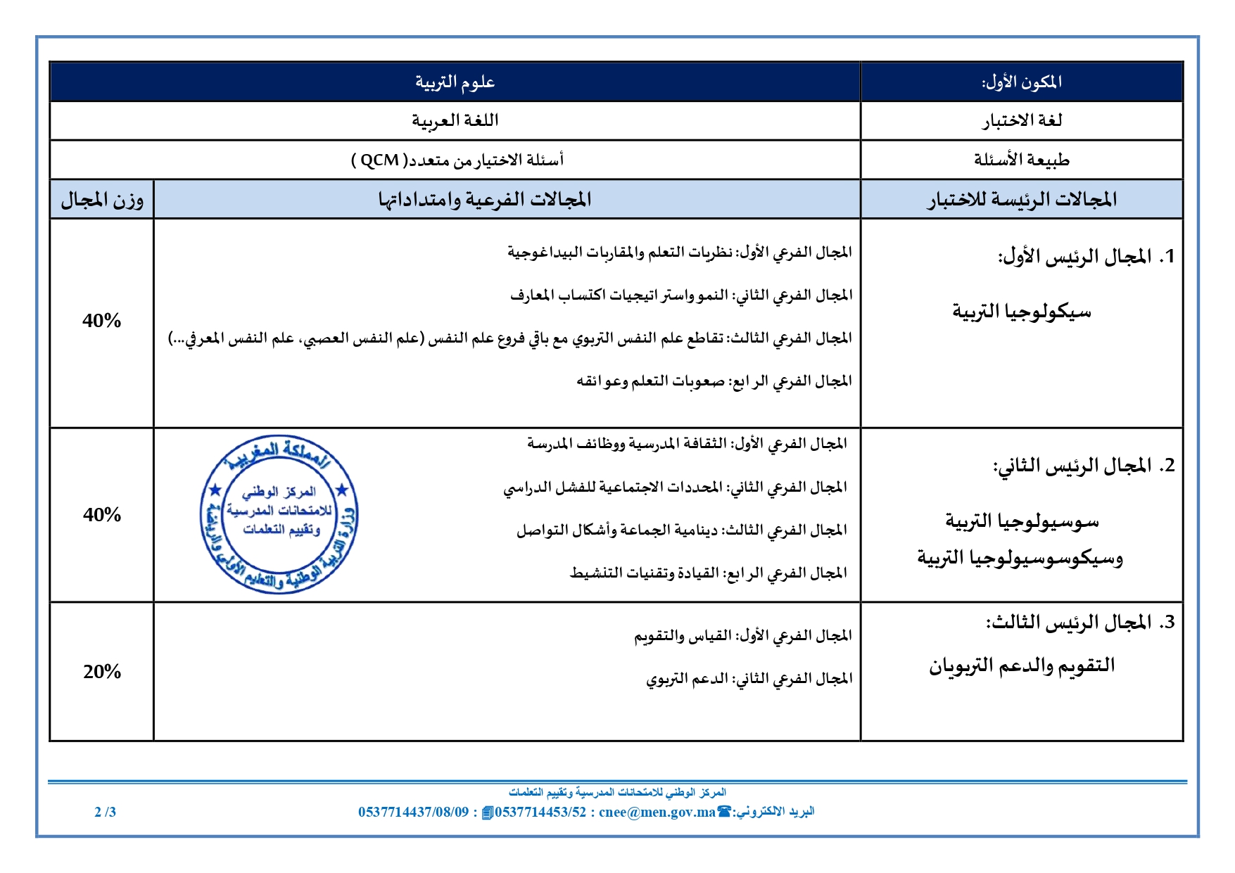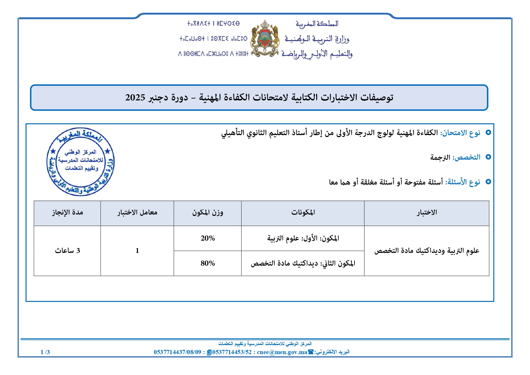 توصيف الاختبارات الكتابية لامتحانات الكفاءة المهنية 2025/2026