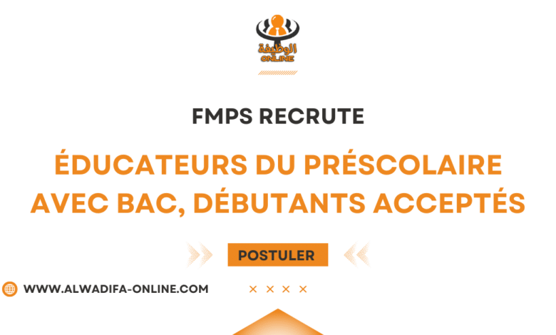 FMPS Recrute : Éducateurs du Préscolaire avec Bac, Débutants Acceptés Concours de Recrutement FMPS 2025 – Éducateurs et Éducatrices du…