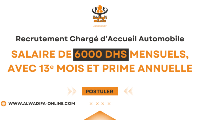 أكمل القراءة »Recrutement Charge(e) d’Accueil Automobile – CDI Tanger, Rabat, Casablanca, Marrakech, Agadir. Offre d’emploi : Chargé(e) d’Accueil Automobile – Tanger, Rabat,…