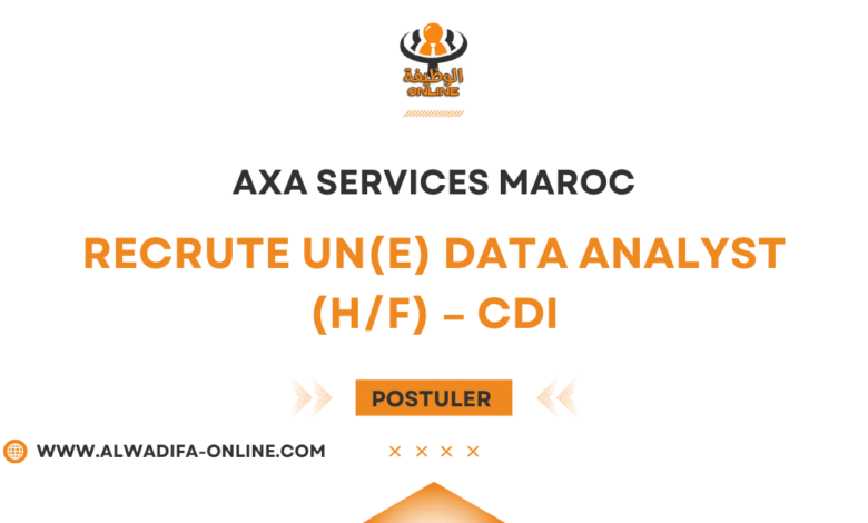 أكمل القراءة »AXA Services Maroc recrute un(e) Data Analyst (H/F) – CDI 🎯 AXA Services Maroc recrute un(e) Data Analyst (H/F) –…