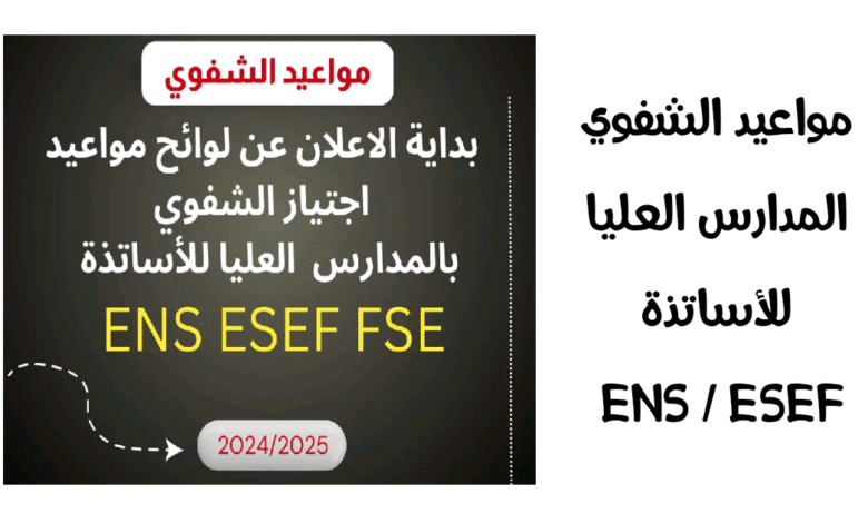 أكمل القراءة »مواعيد اجتياز الشفوي بالمدارس العليا للأساتذة ENS ESEF 2025/2026 مواعيد اجتياز الشفوي بالمدارس العليا للأساتذة ENS ESEF 2025/2026: بعد الإنتقاء…