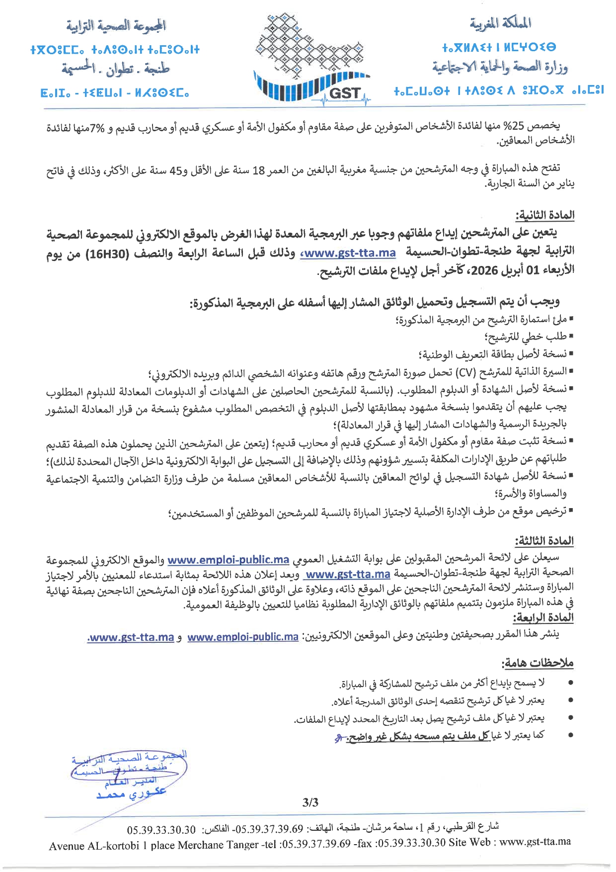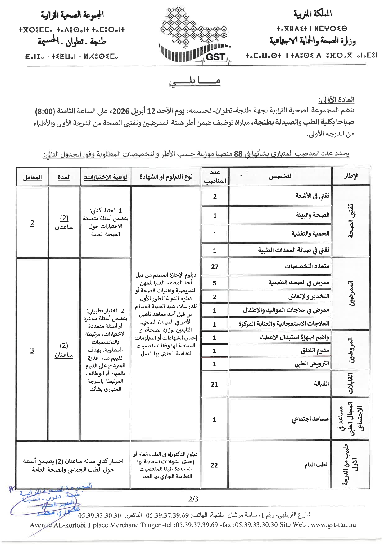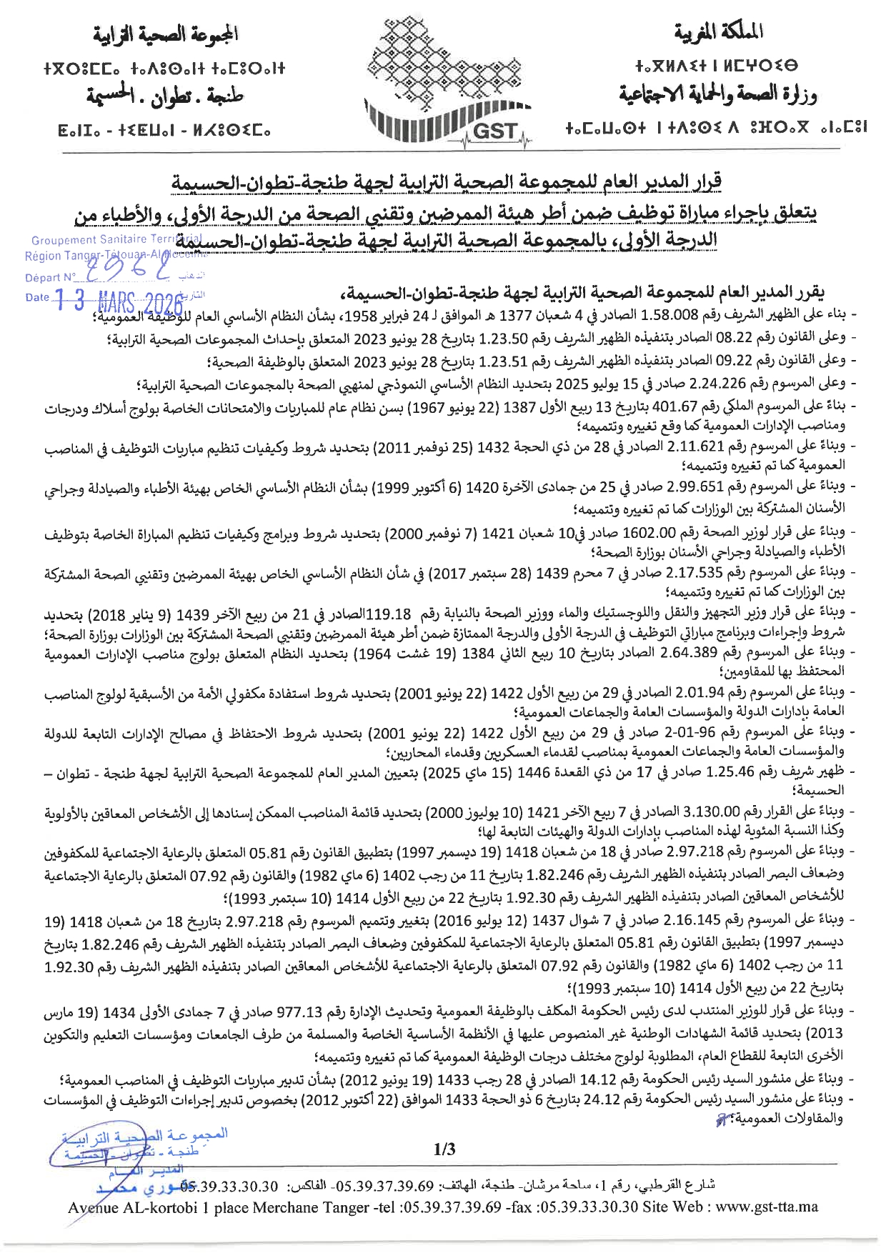 Concours de Recrutement GST TTA 2026 Groupement Sanitaire Territorial de la Région Tanger – Tétouan – Al Hoceima.