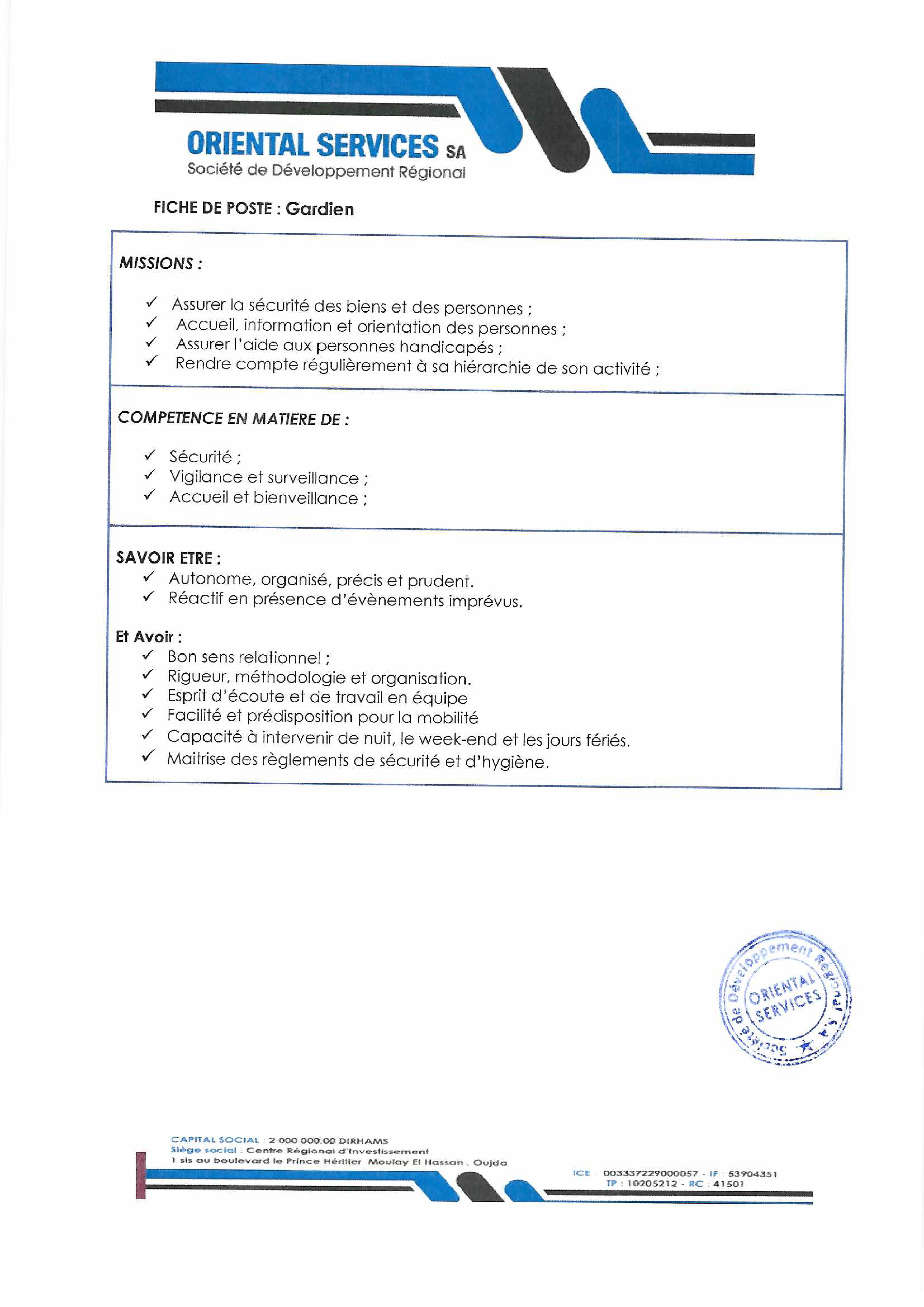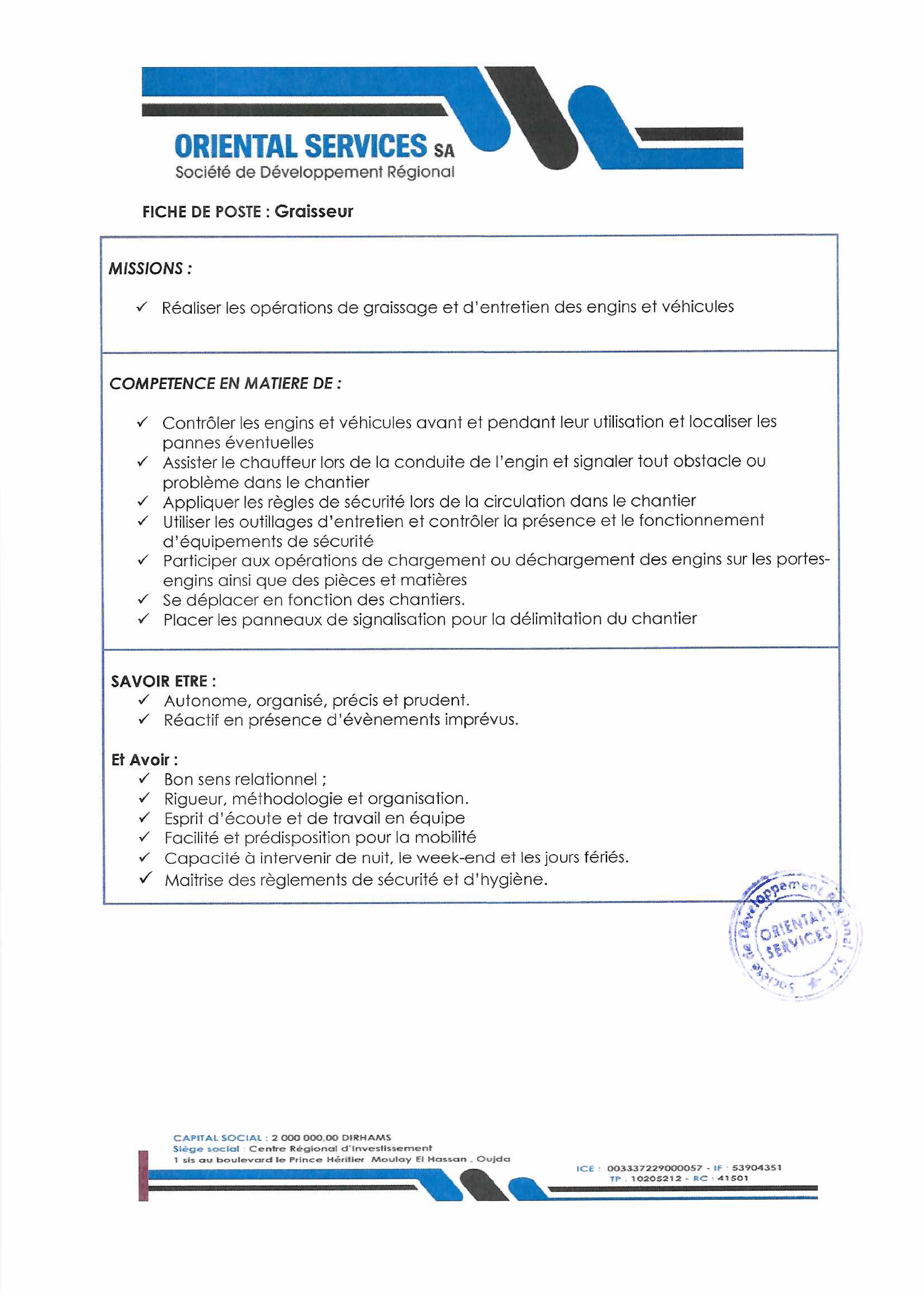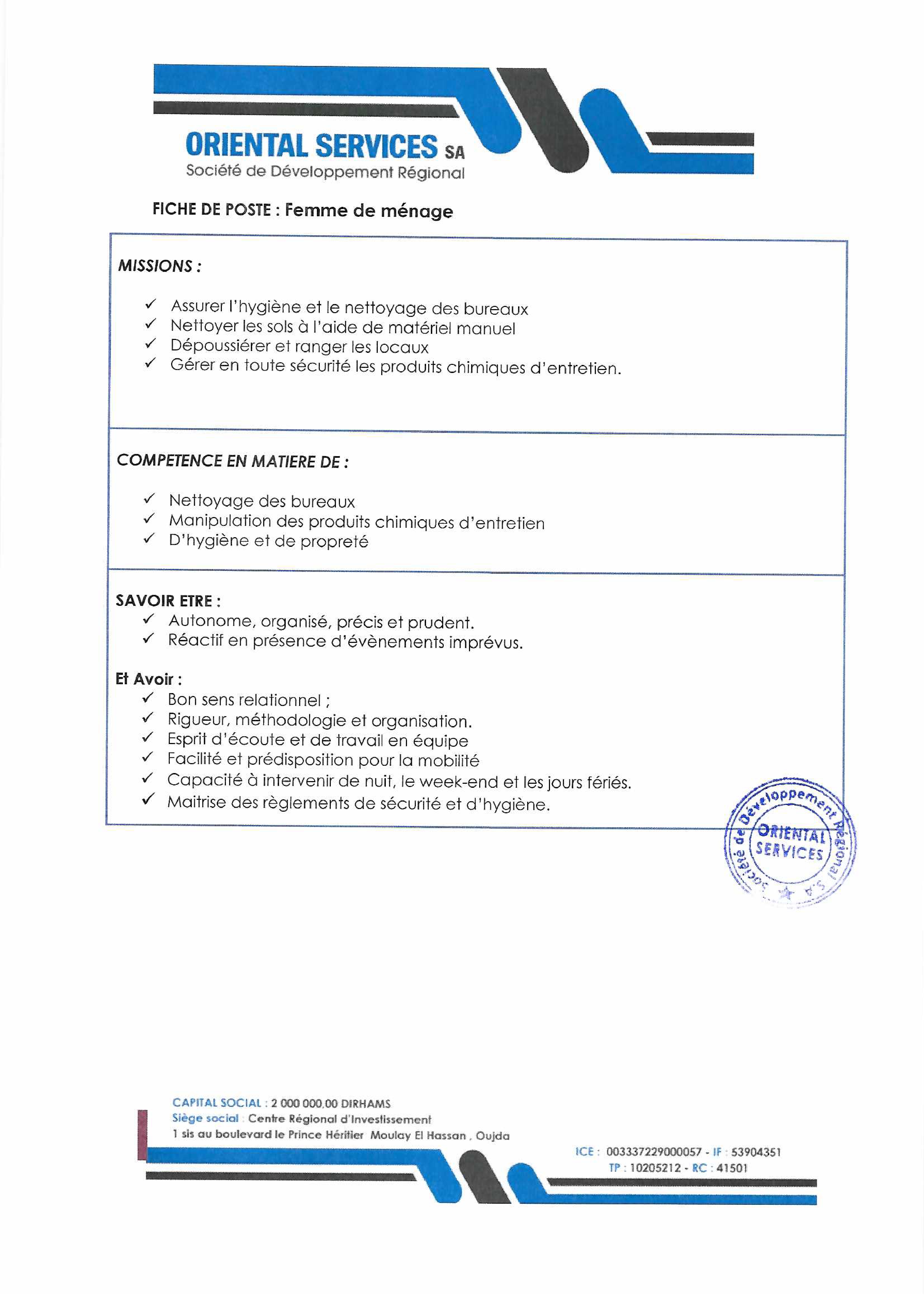 Concours de recrutement à la Société de Développement Régional “Oriental Services” au titre de l’année 2026.