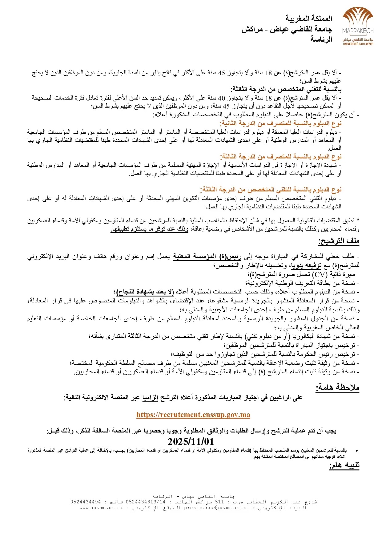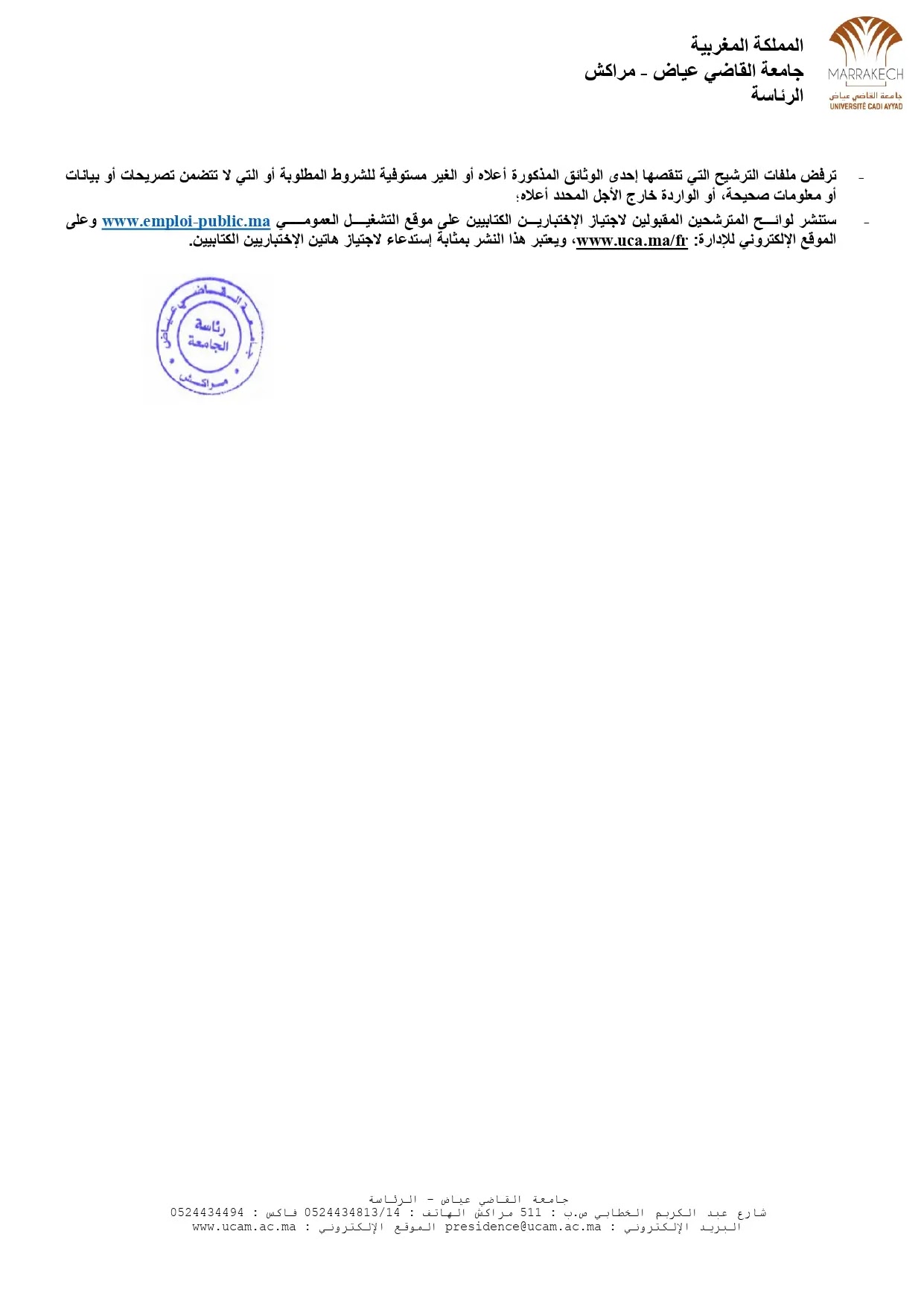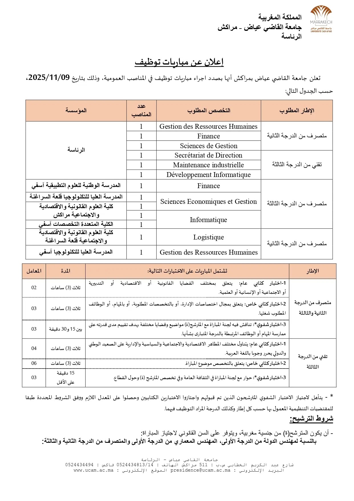 Avis de concours de recrutement au Université Cadi Ayyad: