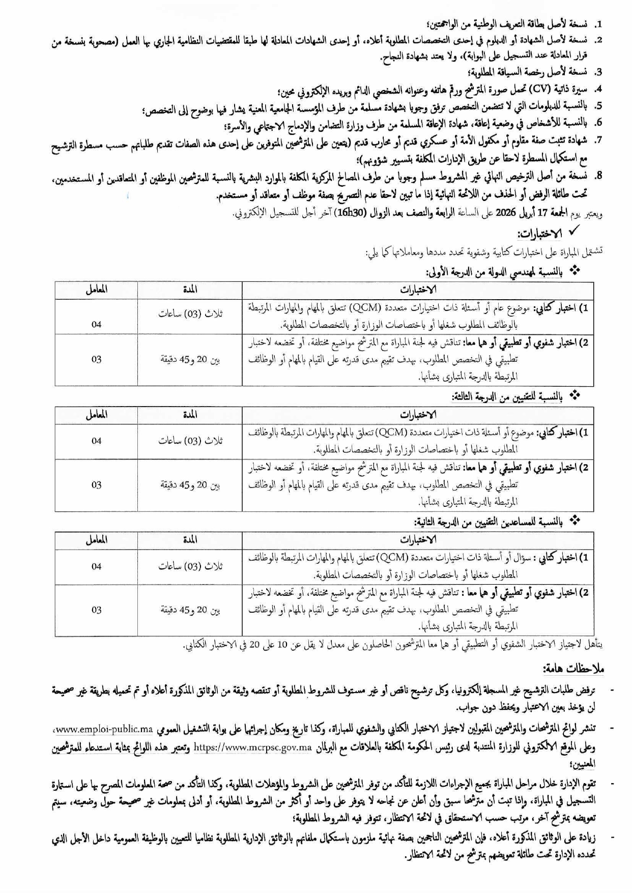 Délai de dépôt des candidatures 17 Avril 2026 – 16:30