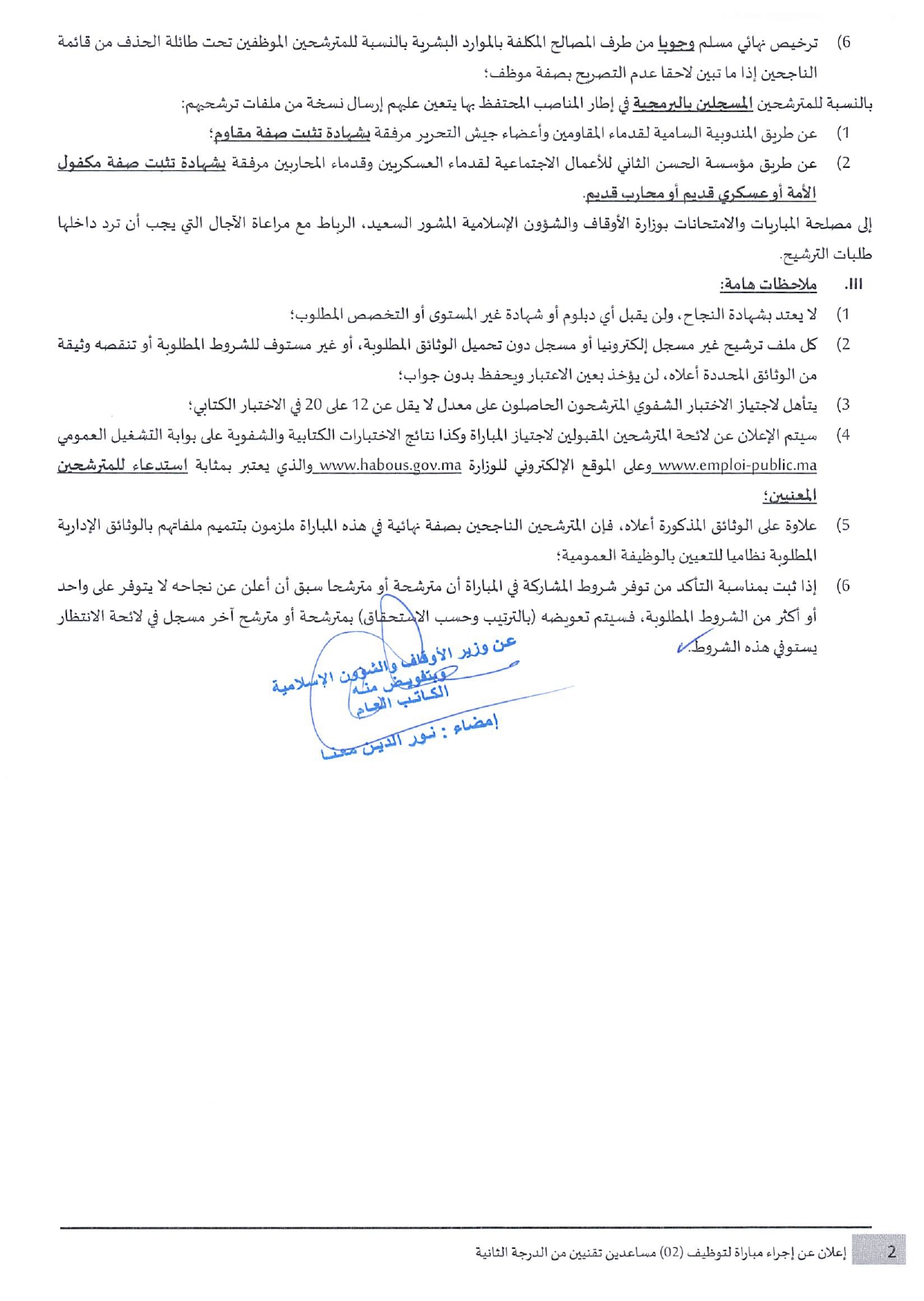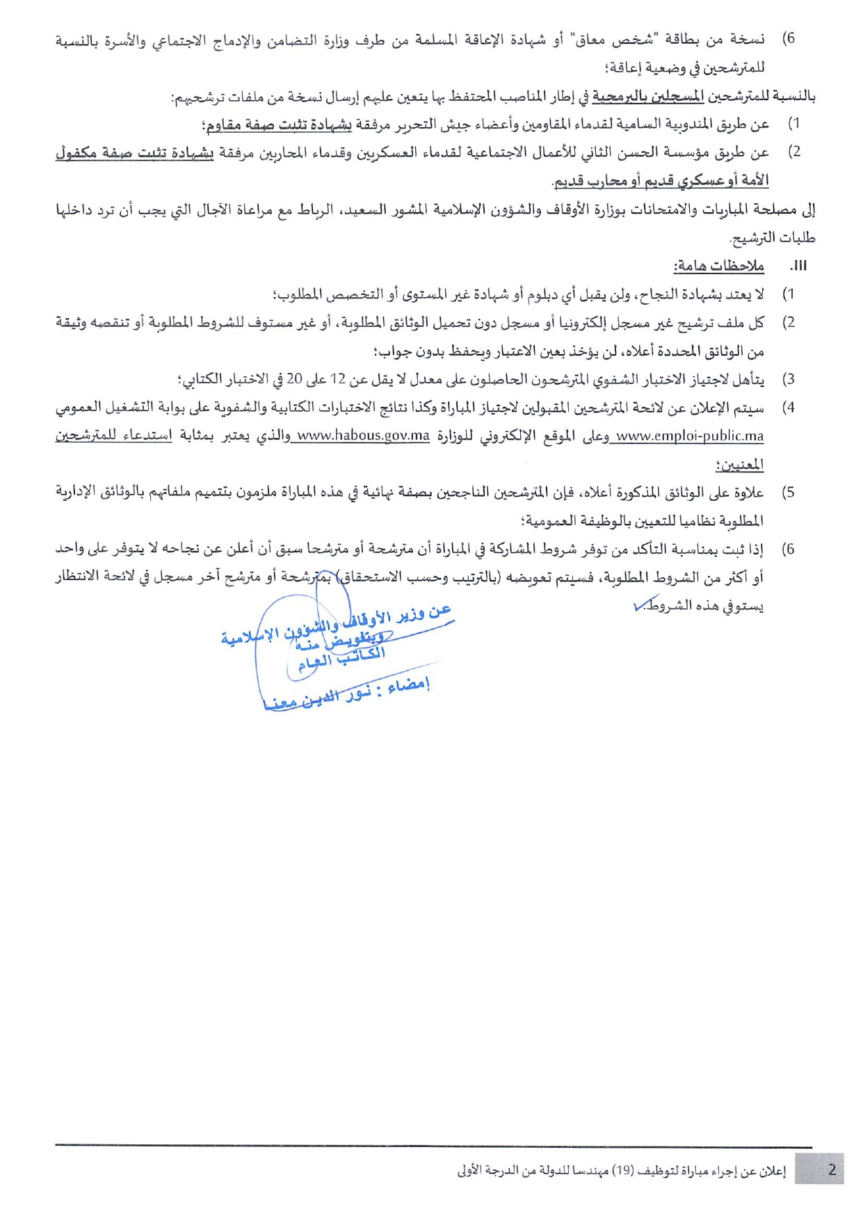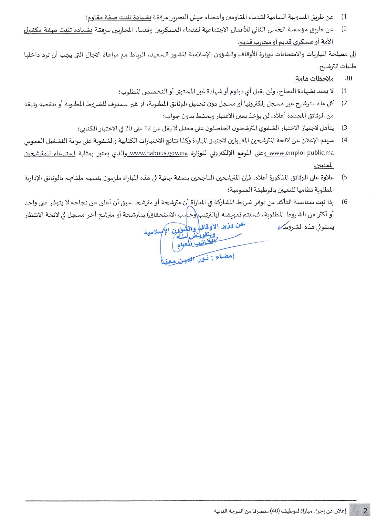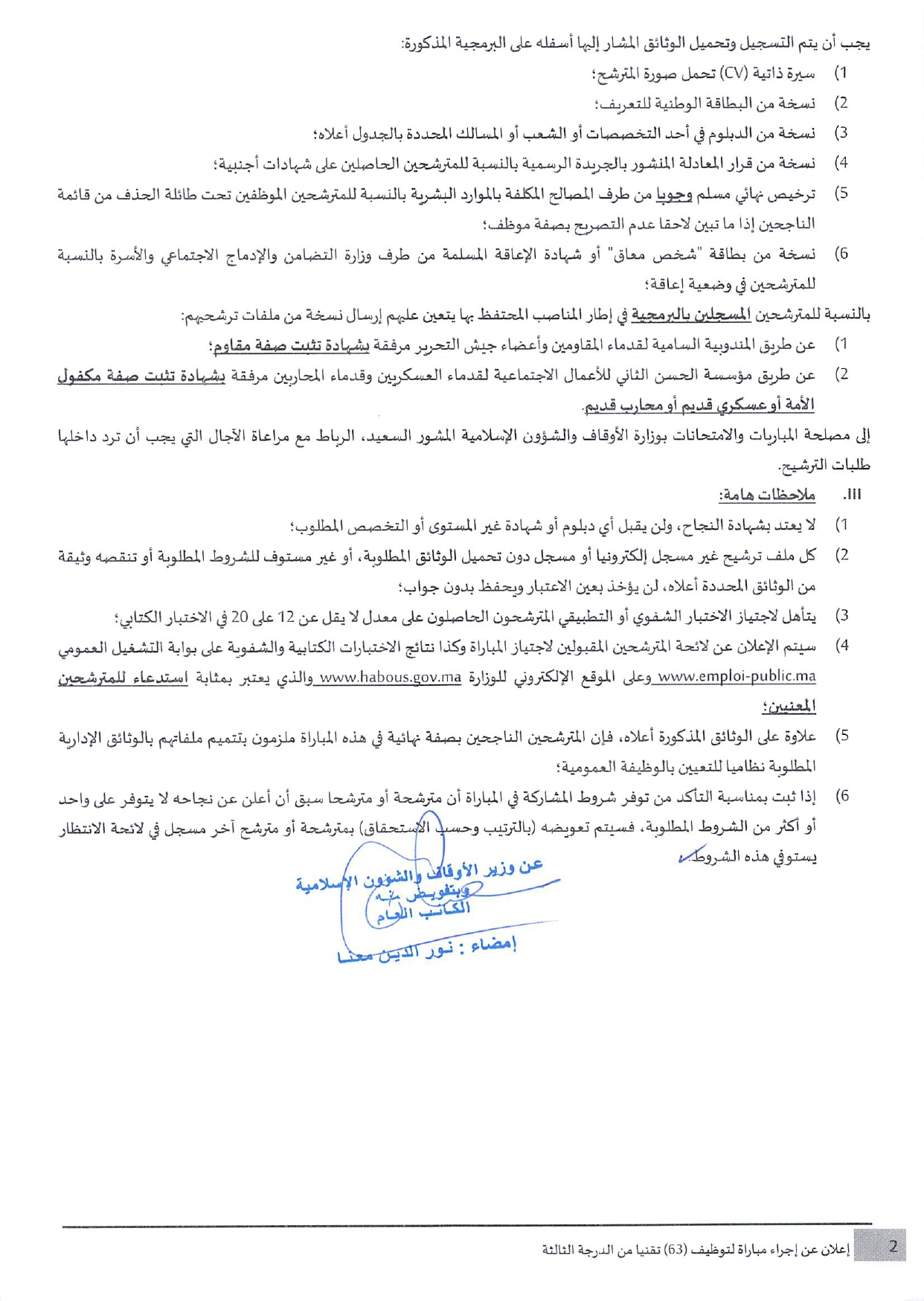 Concours de recrutement au Ministère des habous et des affaires islamiques 2026