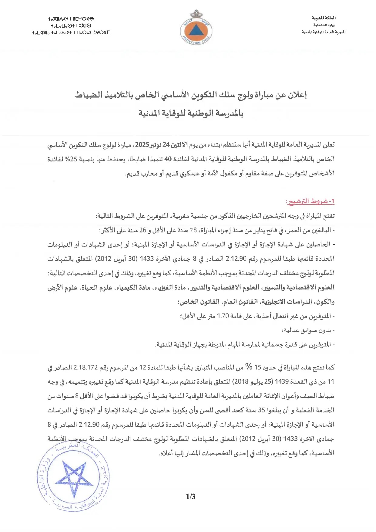 Concours Protection Civile Élèves officiers 2025-2025: Direction Générale de la Protection Civile Concours de recrutement de Élèves officiers ~ Echelle 10 (40 postes) au Ministère de l’intérieur – DGPC.